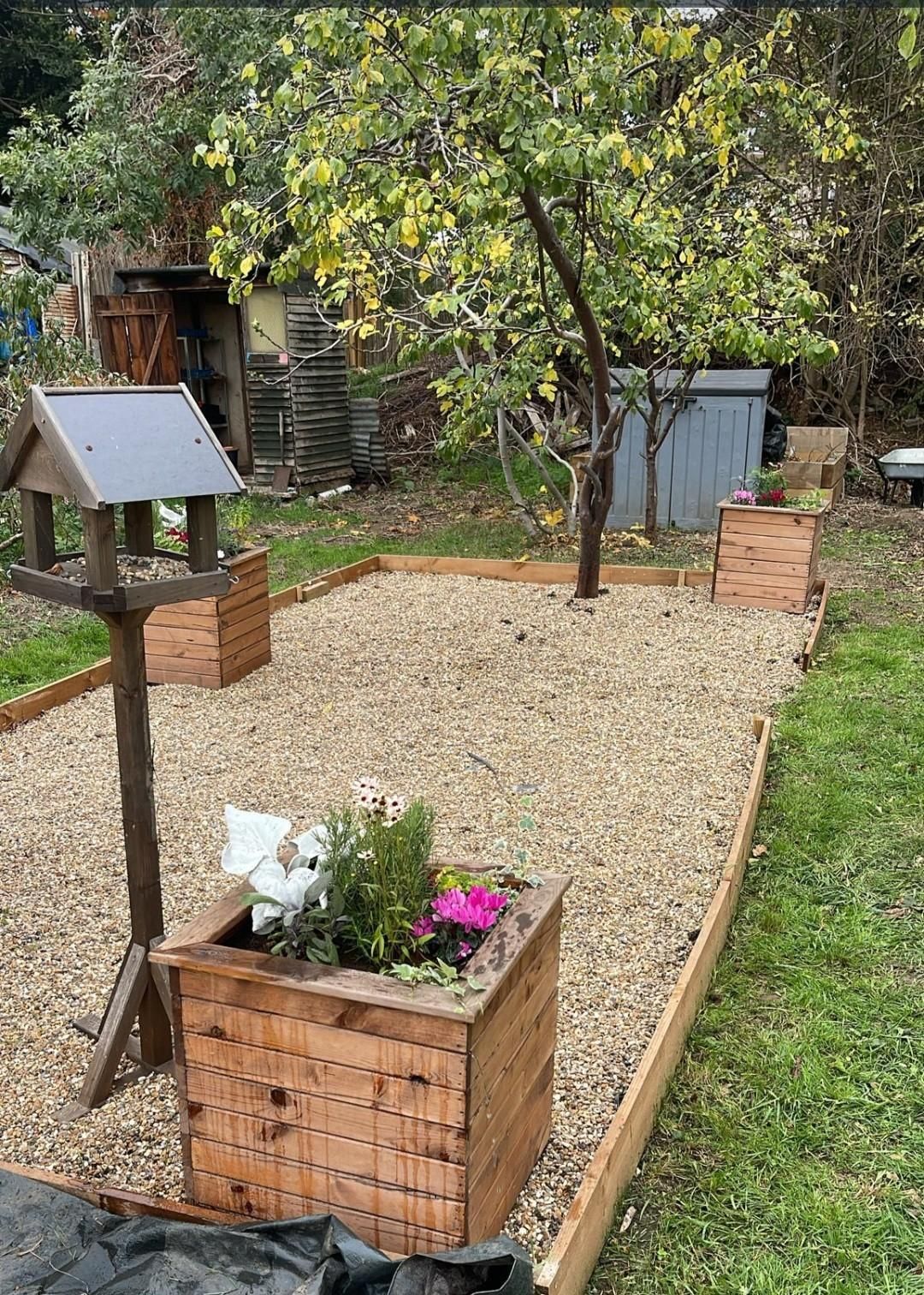 We have created a garden area, with space for the children to sit and relax. We have also created some raised beds, that we have already sowed some crop from, such as tomatoes, runner beans, courgettes and strawberries.