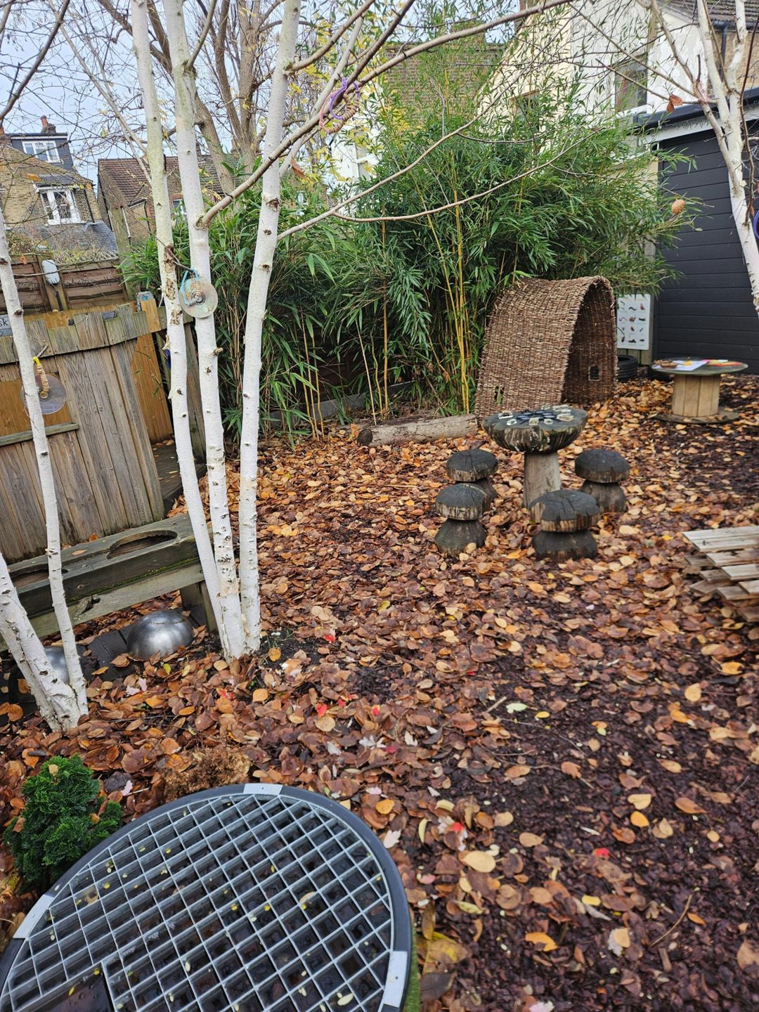 The forest school movement has a philosophy of child-led learning, with a focus on all the senses.The aim is to foster rich learning experiences, ecological literacy, and healthy living by connecting children to nature.The Forest School is loved by everyone. We have thriving trees and bushes bushed. Twice a week, our 2 Forest School Leaders, carry out sessions with the 3-4 year old children. They learn about the nature around them and learn new things about the animals or insects we find.